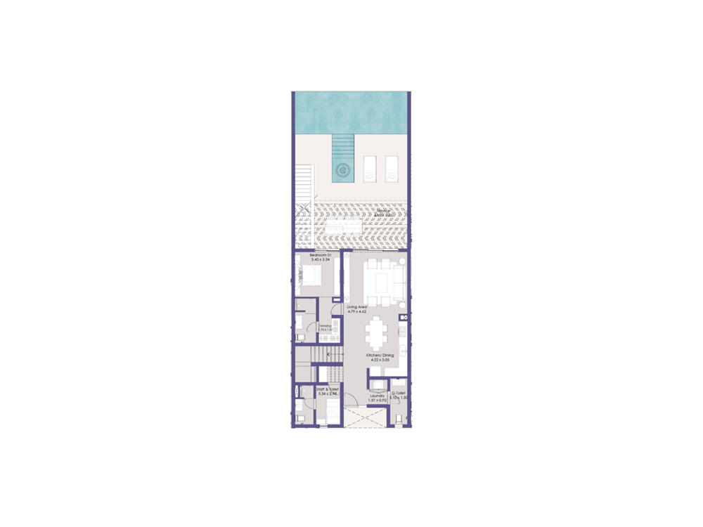 This 3-bedroom duplex spans 212.5 sqm, offering a well-balanced living space with high-quality finishes and a modern design.
